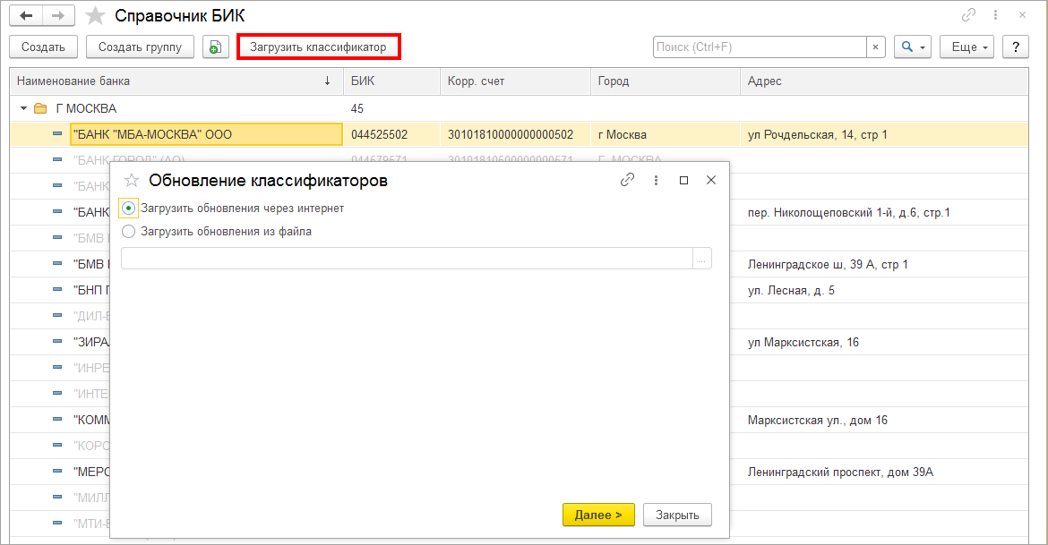Автоматическое заполнение справочника банков РФ в 1С:Предприятие