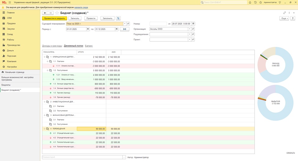 А затем в разделе «Денежный поток» (альтернатива БДДС):