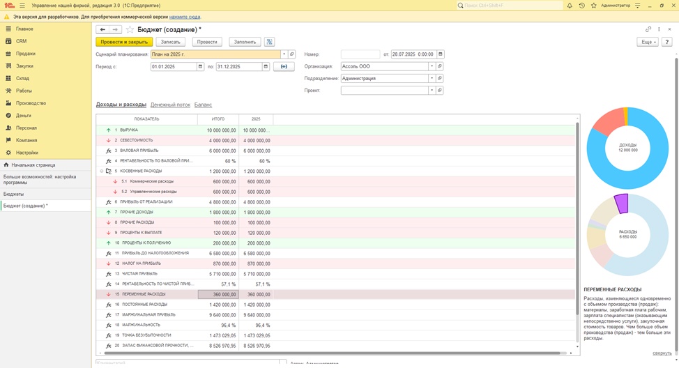 Бюджетирование — ключевой инструмент финансового планирования и контроля в бизнесе. В 1С:Управление нашей фирмой (УНФ) есть встроенные механизмы для формирования бюджетов, контроля их исполнения и анализа отклонений.