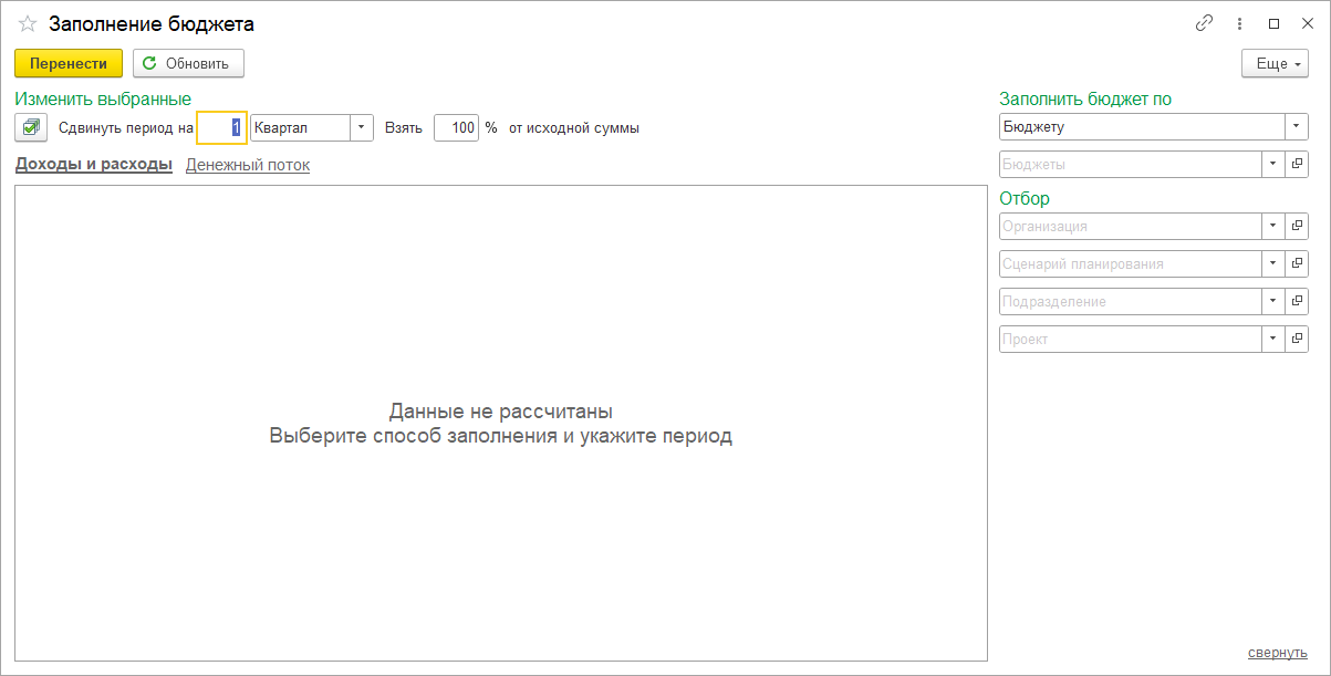 Кроме того, при заполнении бюджета можно использовать данные других бюджетов, для этого необходимо нажать «Заполнить»: