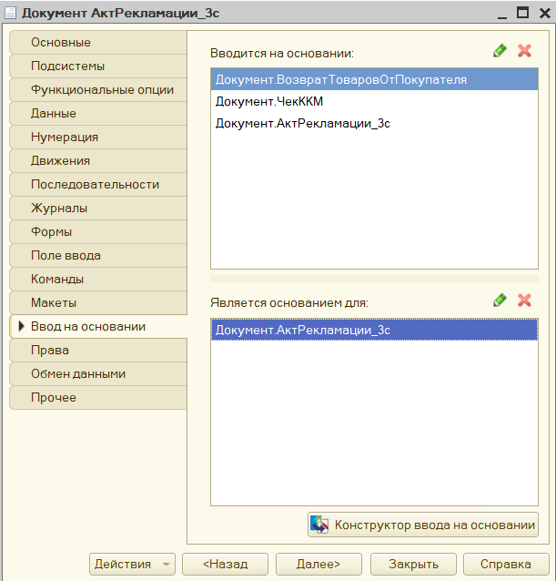 В качестве примера возьмем документ-основание «Акт рекламации» и документ-приемник «Ордер на перемещение товаров».