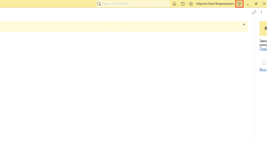 - Нажмите на иконку, изображенную возле имени пользователя.