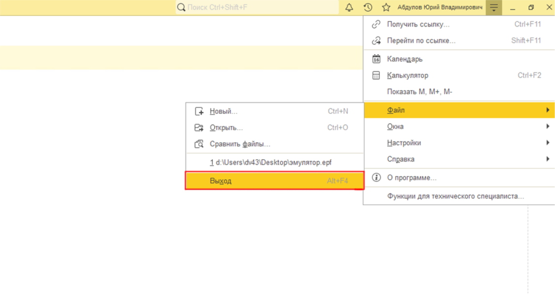 Существует пара способов для правильного завершения работы в режиме предприятия 1С.