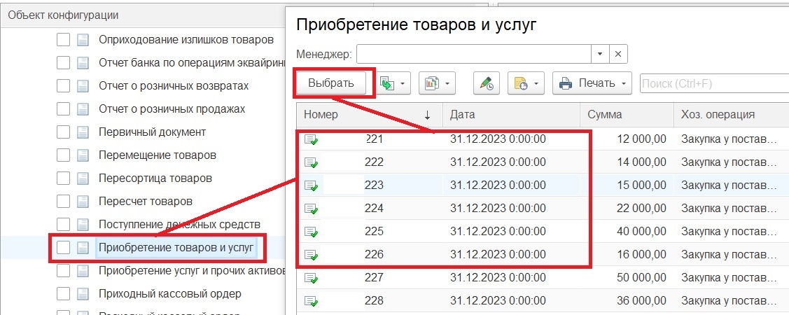 4. В появившемся окне можно выбрать конкретные документы и нажать «Выбрать».