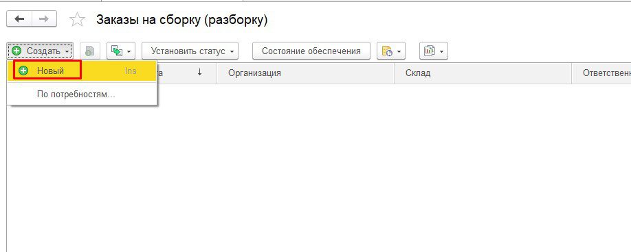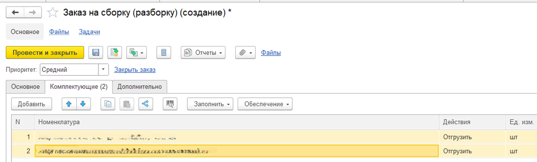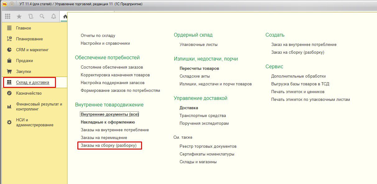 Заказ на сборку/разборку в 1С:УТ 11.4
