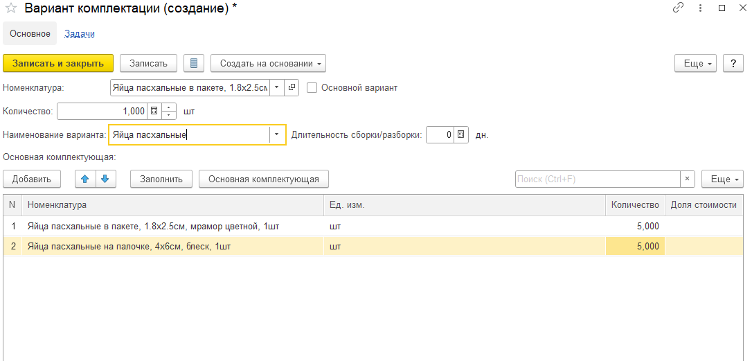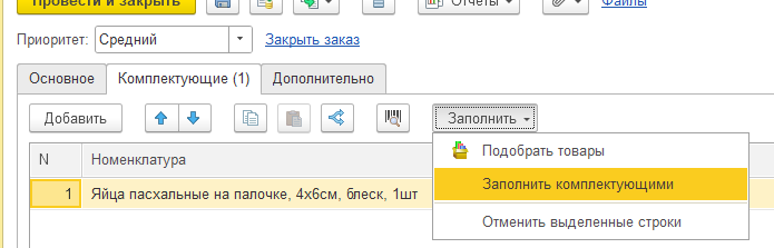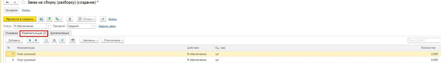 Теперь на основании заказа создайте сборку и закройте.