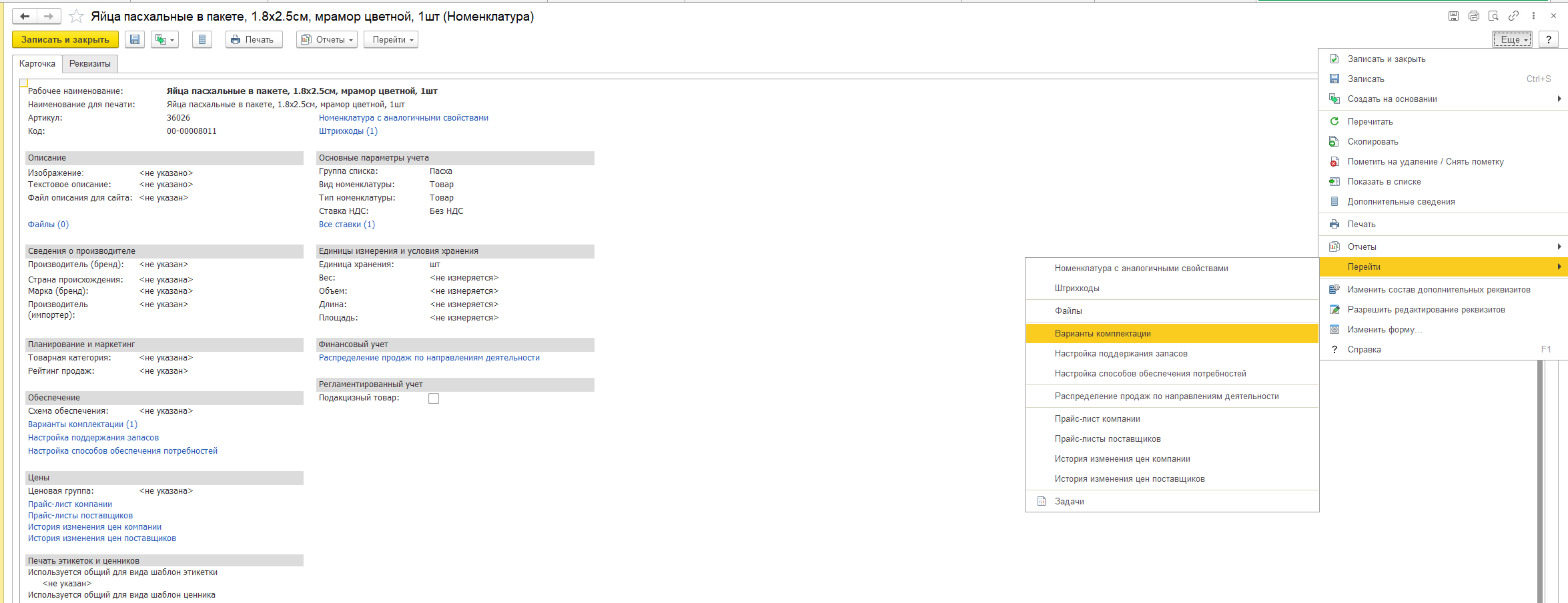 Чтобы в 1С:УТ 11 использовать варианты комплектации номенклатуры, откройте список из карточки комплекта.
