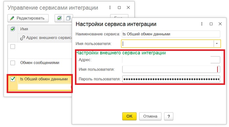 *Помните, что необходимо будет изменить в режиме предприятия 1С изменить пароль и логи пользователя. Для этого зайдите в «Управление сервисами интеграции» и измените сервис, для которого вы создавали имя и пароль.
