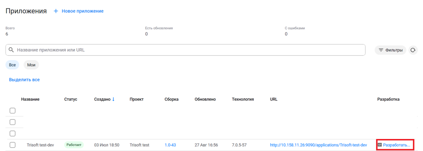 Для этого необходимо в приложения напротив процесса, который вы хотите изменить нажать на «Разработать…»: