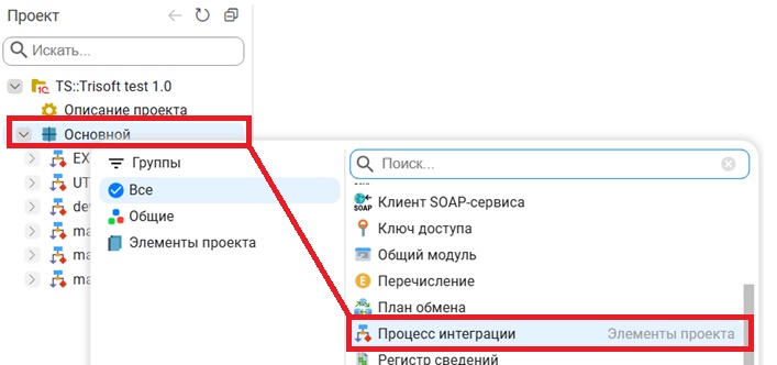 5. Далее необходимо создать Процесс интеграции, который будет повторять уже существующую схему. Удалите предыдущую, которая не работала.