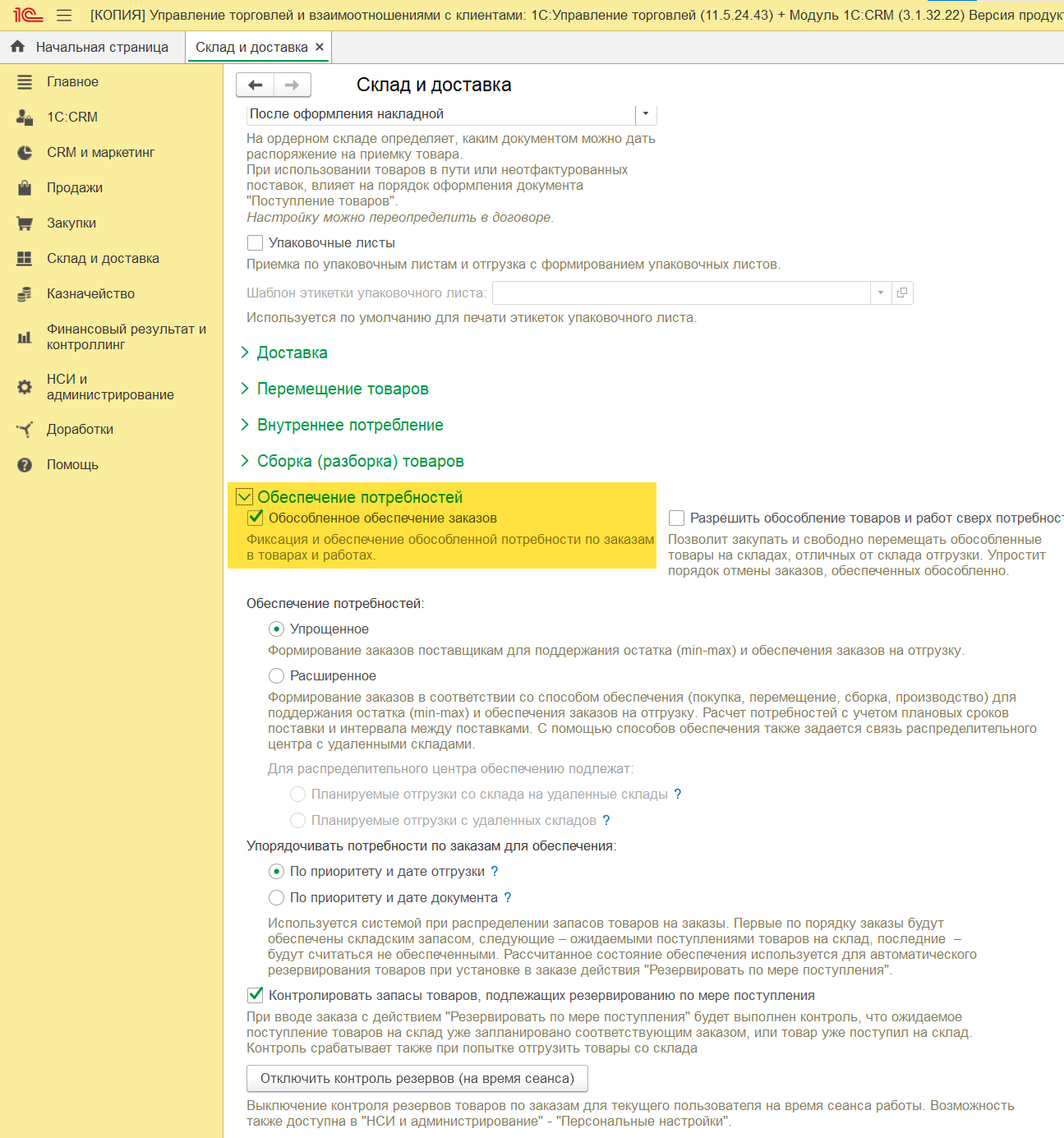 Обособленное обеспечение в 1С: УТ 11 — инструкция по применению