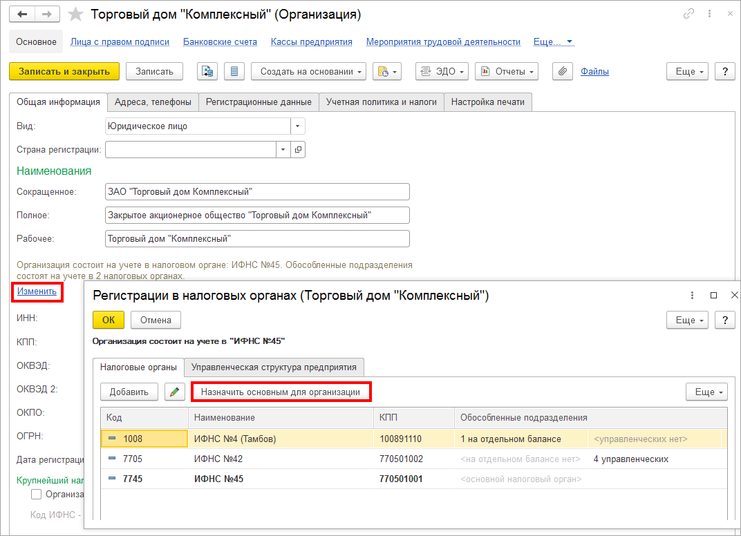 Можно добавить несколько налоговых органов.