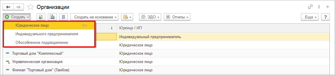 Вся информация о юридических и физических лицах организаций вносится в справочник Организации.