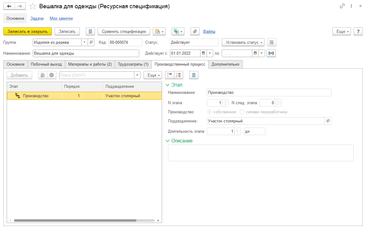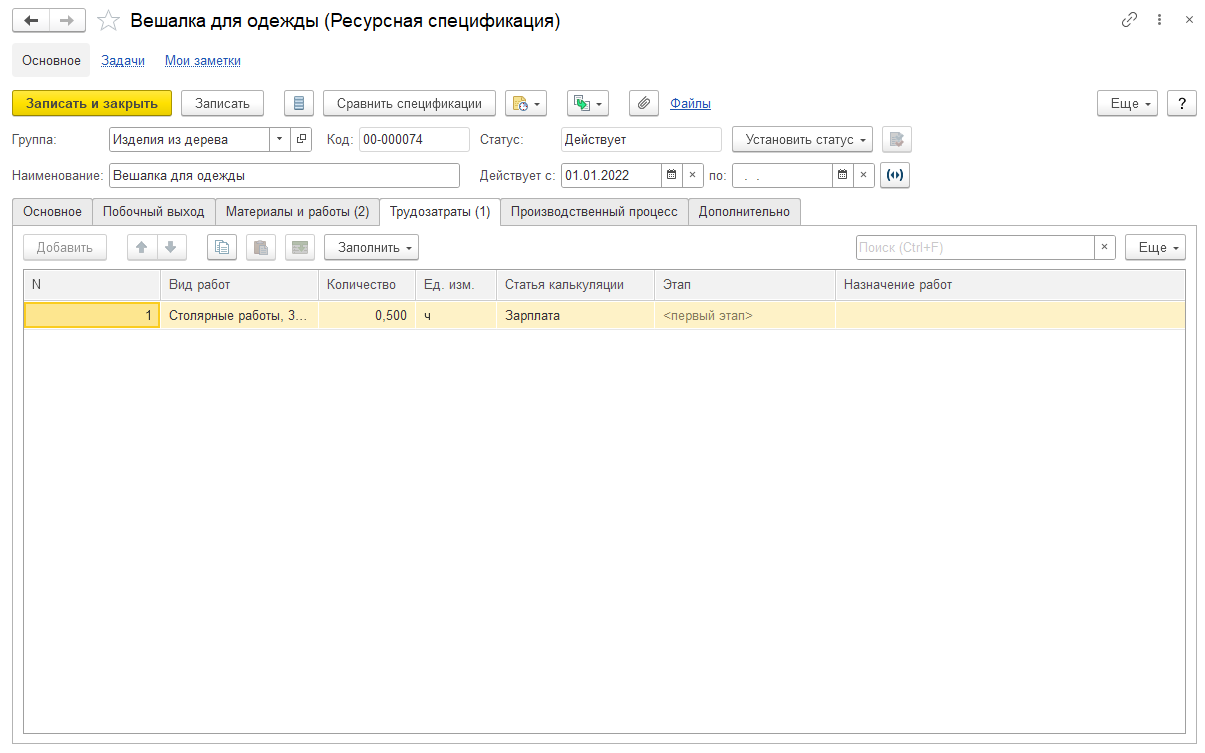 Ресурсная спецификация в 1С:Комплексная автоматизация
