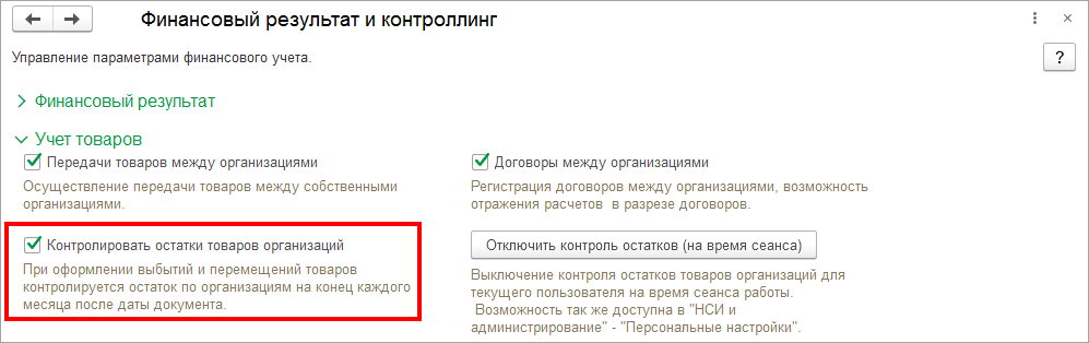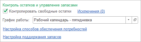 Общий контроль остатков через флажок Контролировать свободные остатки.