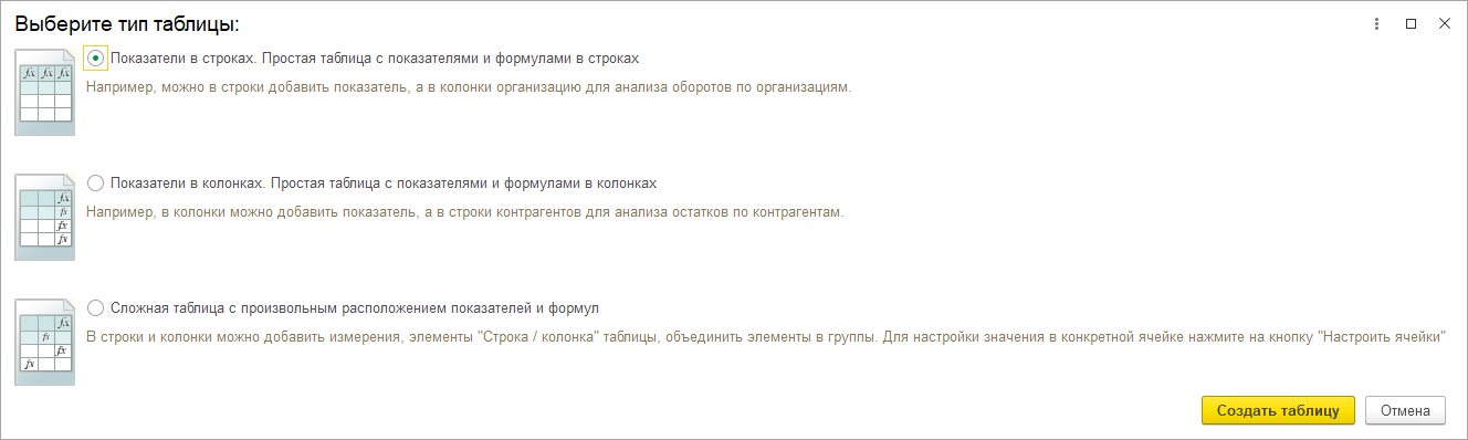 Бюджетные формы могут быть разного уровня сложности. Тип структуры определяется видом таблицы: