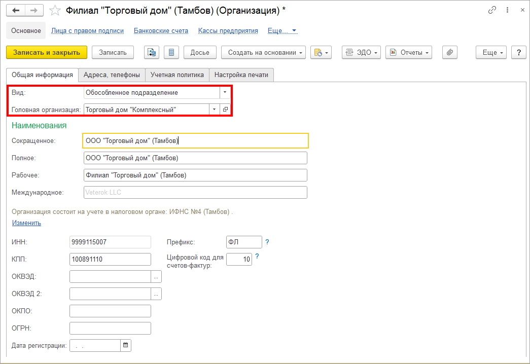 Учет филиалов и обособленных подразделений в «1С:Предприятие 8»: настройка и особенности работы