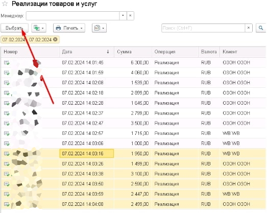 После того как все необходимые документы выделены, нажмите кнопку «Выбрать» (рис. 6). Выбранные позиции будут зарегистрированы для последующей выгрузки.